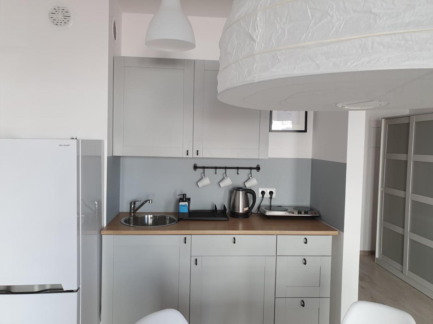 Studio. The studio offers a washing machine and a dining area, as well as a private bathroom featuring a shower. In the fully equipped kitchenette, guests will find a stovetop, a refrigerator, kitchenware and an electric kettle. This studio features parquet floors, heating and a flat-screen TV. The unit offers 2 beds. Studio - 4 osobowy. Powierzchnia pokoju ok.: 23 mkw.